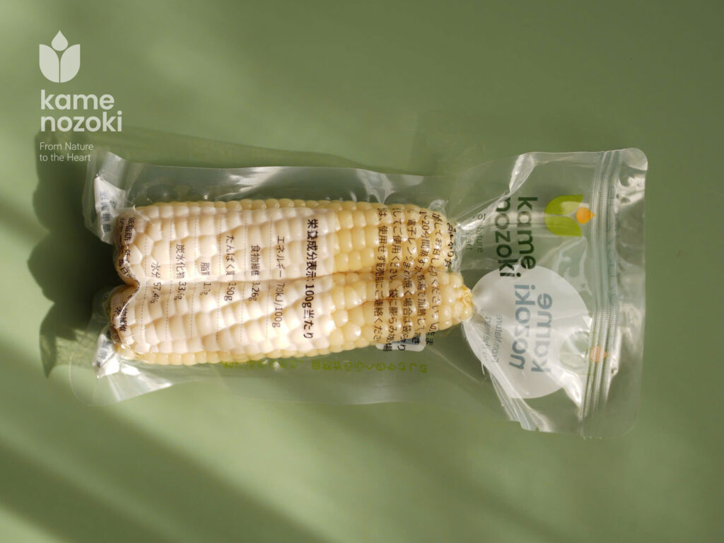 色や風味に違いはあれど、どちらのモチトウモロコシもKamenozokiが日本基準で栽培し、化学物質や遺伝子組み換えを一切使用せず、畑から食卓まで自然のままの価値を大切にしています。