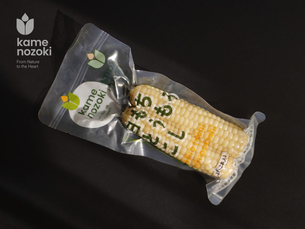 カメノゾキのモチトウモロコシは、専用の真空パックで包装され、加熱調理に安全性が確認されています。使用する際は、袋をそのまま沸騰したお湯に入れて、約15分間加熱してください。この方法で、トウモロコシが均等に調理され、もちもちとした食感と上品な甘さをそのまま保ちながら、追加の準備作業は必要ありません。袋を開けると、トウモロコシのやさしい香りが広がり、まるで畑で収穫したばかりのような感覚を楽しめます。